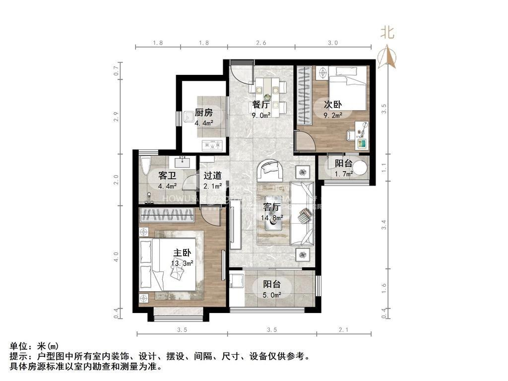 厅室2室2厅1卫1阳台