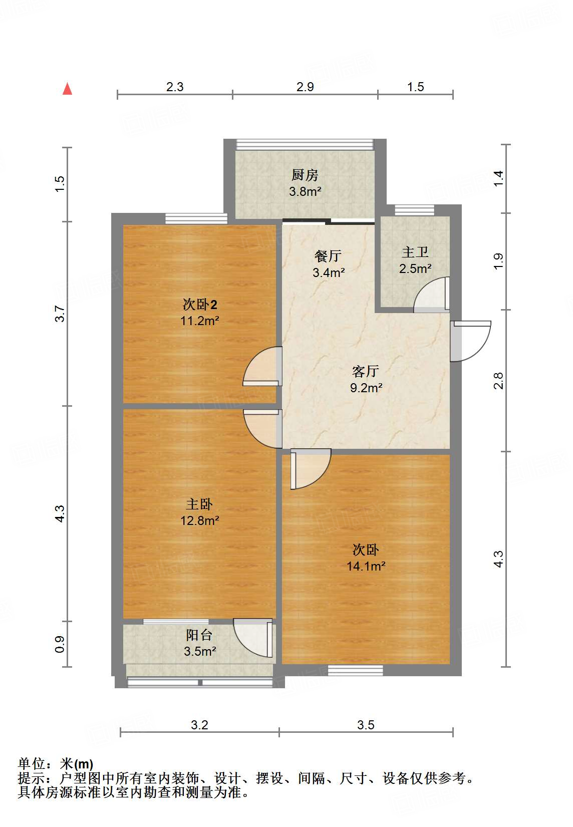 厅室3室1厅1卫2阳台