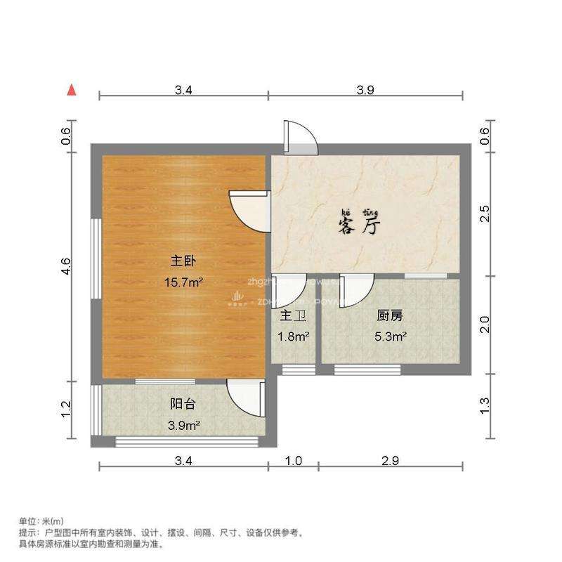 厅室1室1厅1卫1阳台