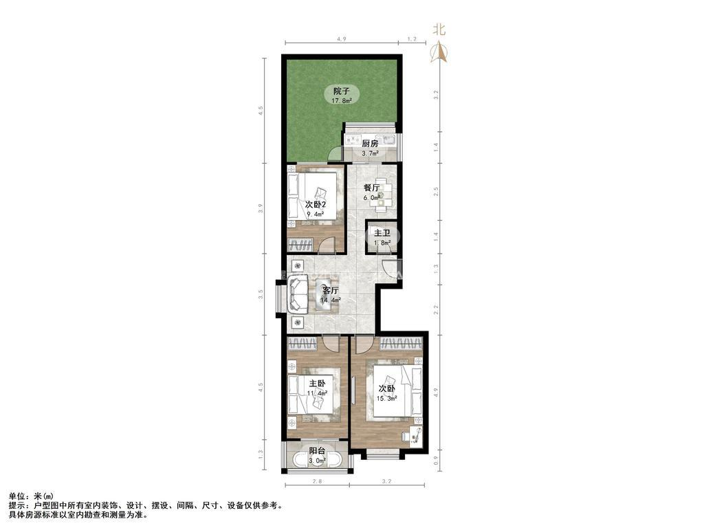 朝向南北 建筑面积80㎡