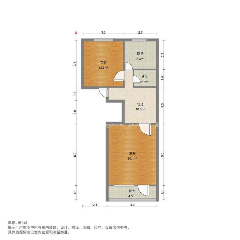 朝向南北 建筑面积60㎡