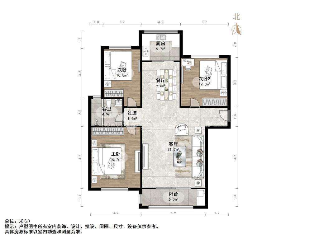 厅室3室2厅2卫1阳台
