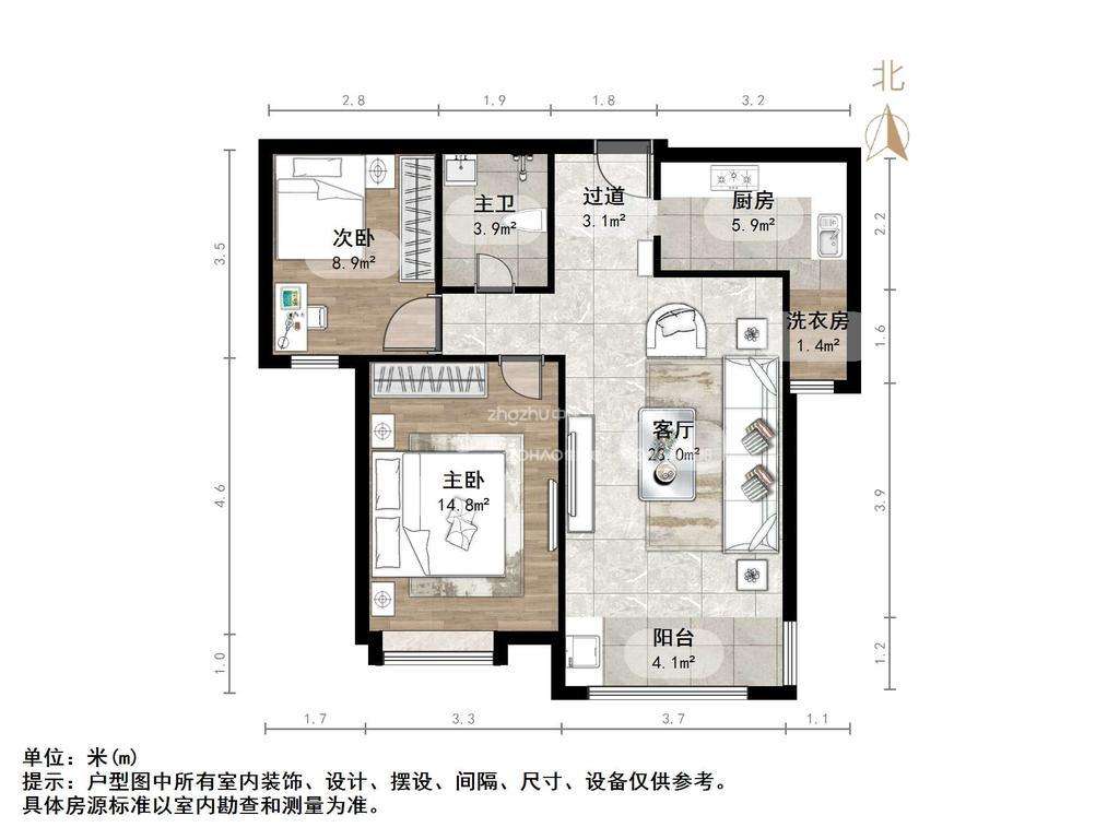 朝向南北 建筑面积90㎡