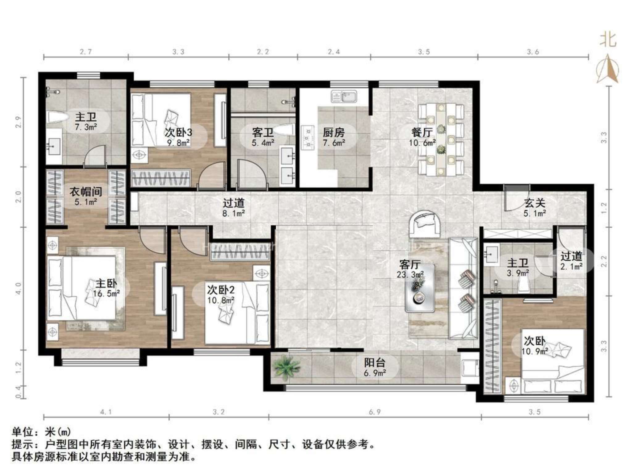 厅室4室2厅3卫2阳台