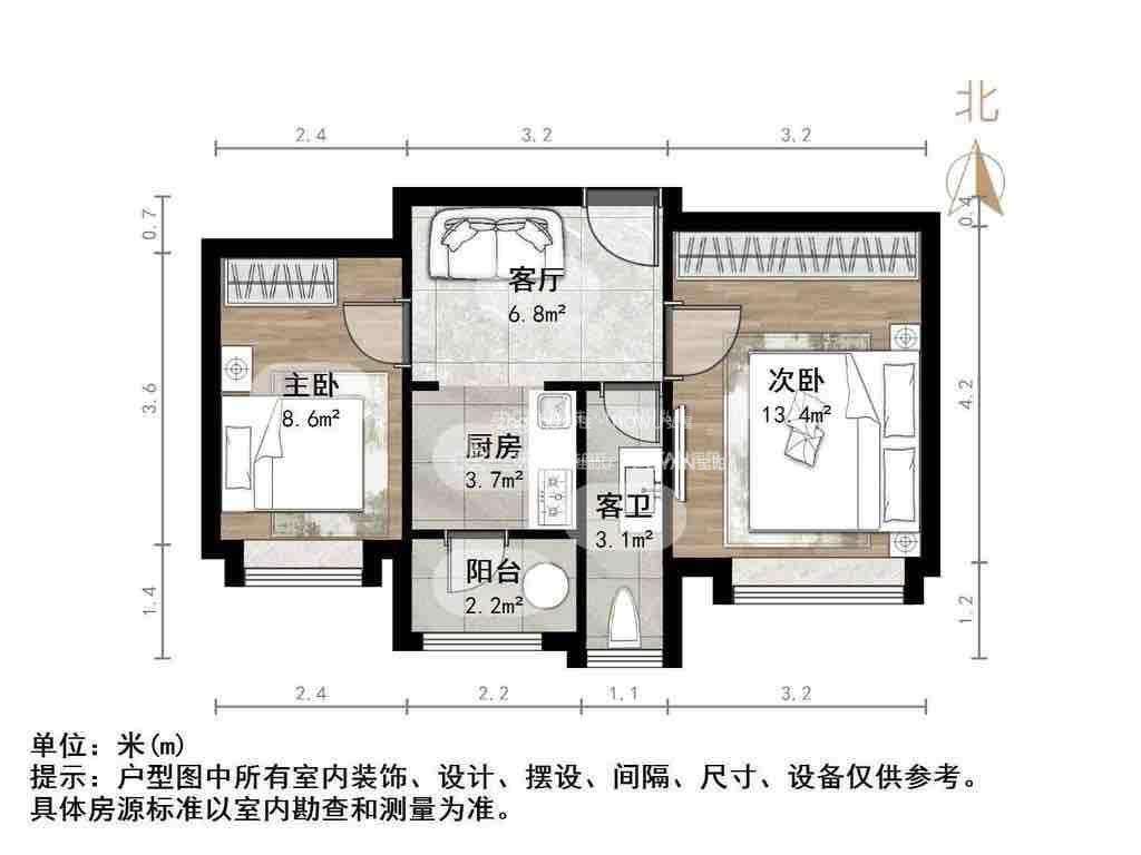 厅室2室1厅1卫1阳台