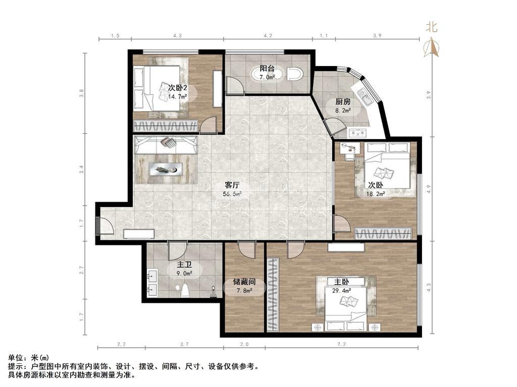 厅室3室2厅1卫1阳台
