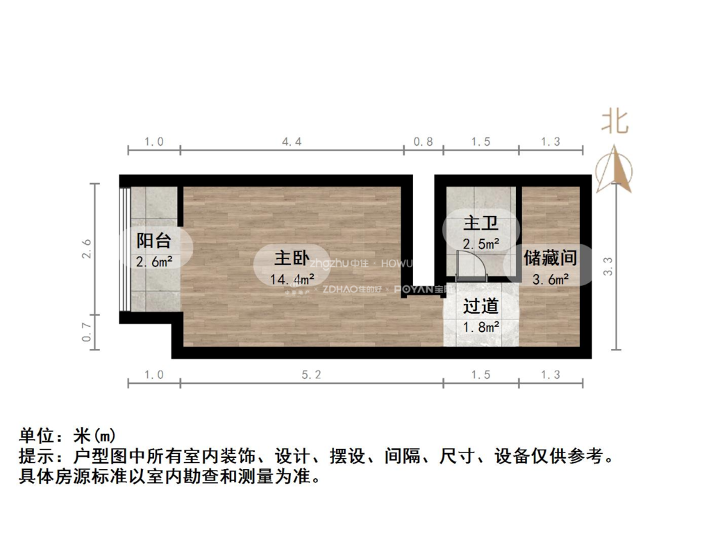 厅室1室1厅1卫0阳台
