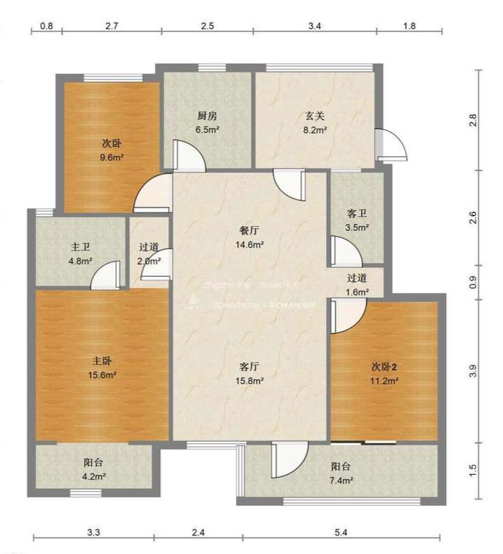 厅室3室2厅2卫0阳台