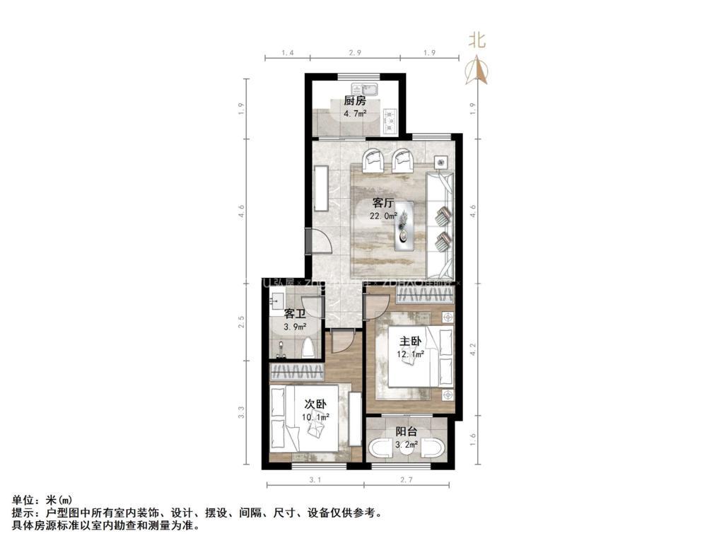 朝向南北 建筑面积75㎡
