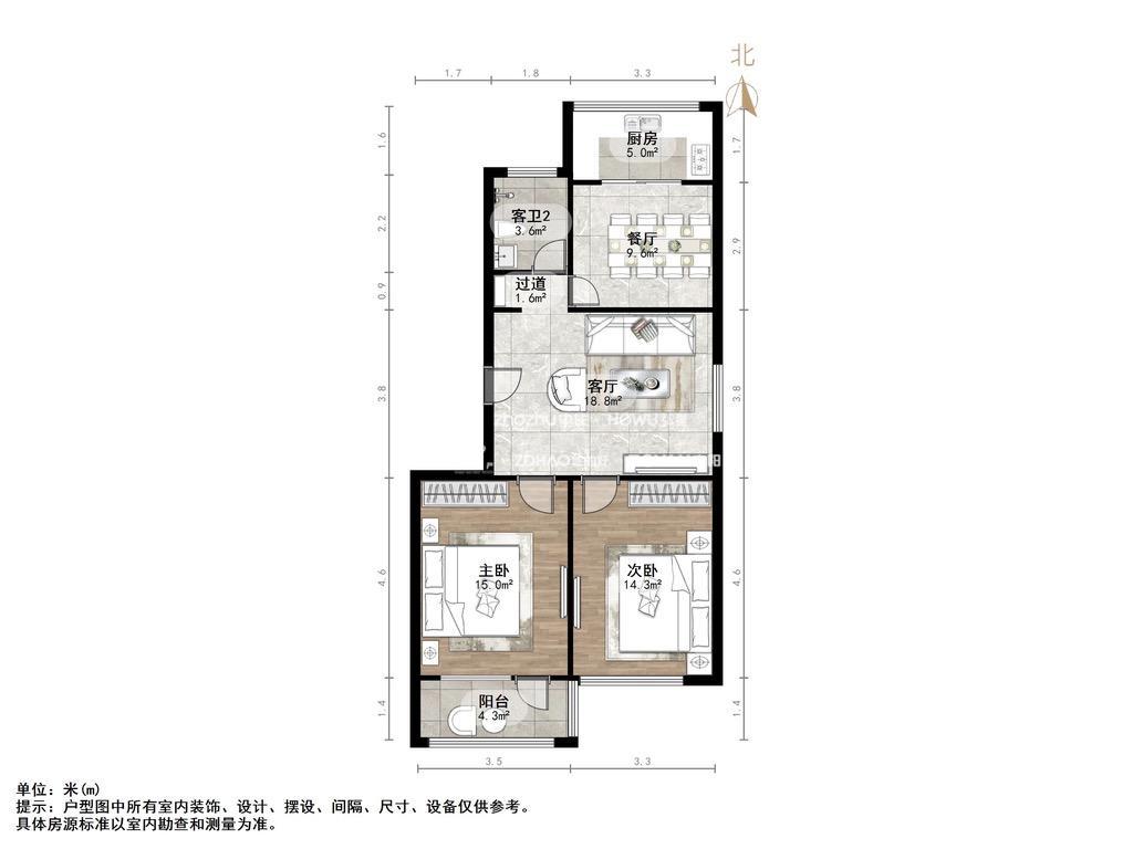 厅室2室2厅1卫1阳台
