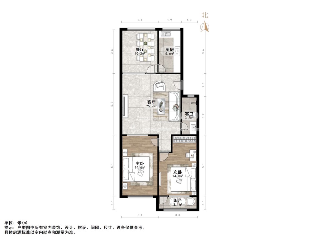 朝向南北 建筑面积92.66㎡