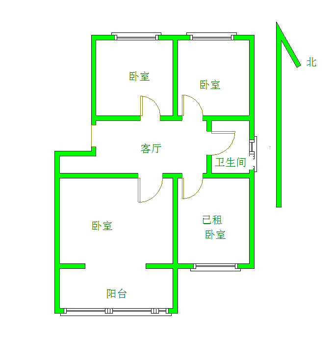 厅室3室2厅1卫1阳台