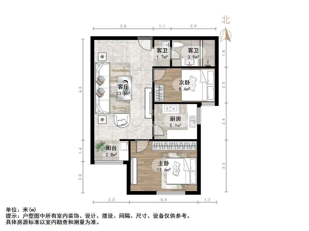 朝向南 建筑面积80.69㎡