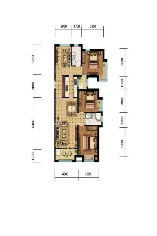 厅室3室2厅2卫1阳台