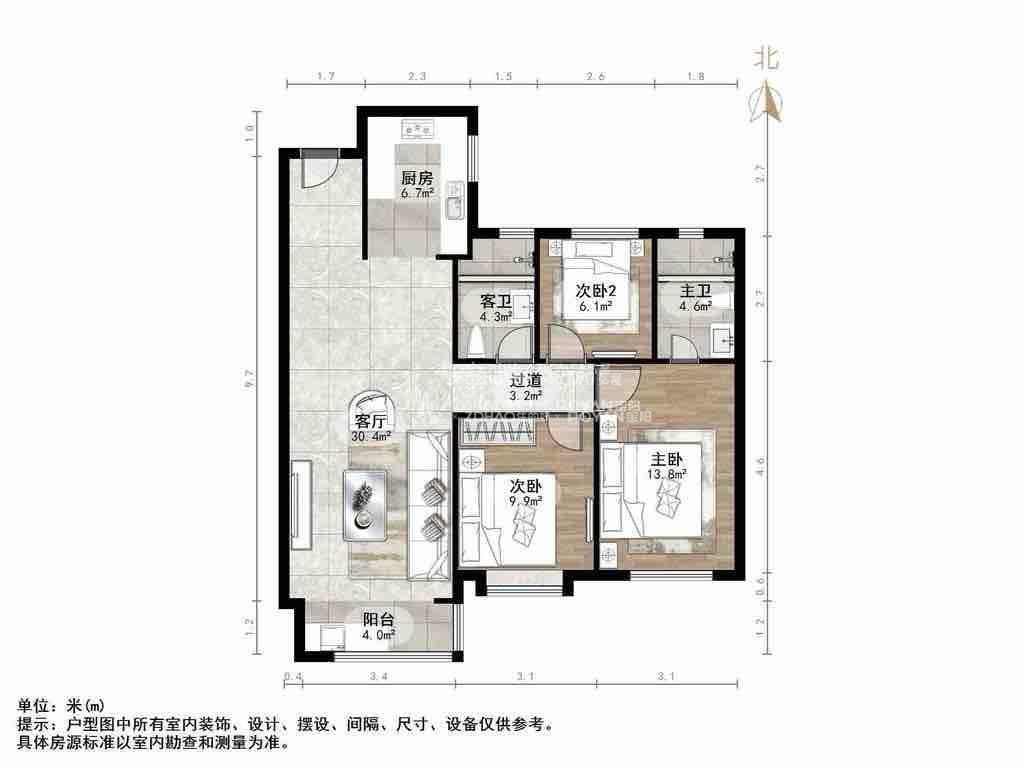 厅室3室2厅2卫1阳台