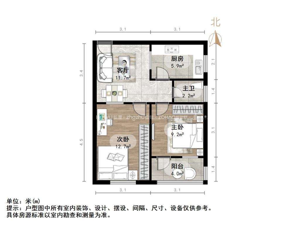 朝向南北 建筑面积56.7㎡
