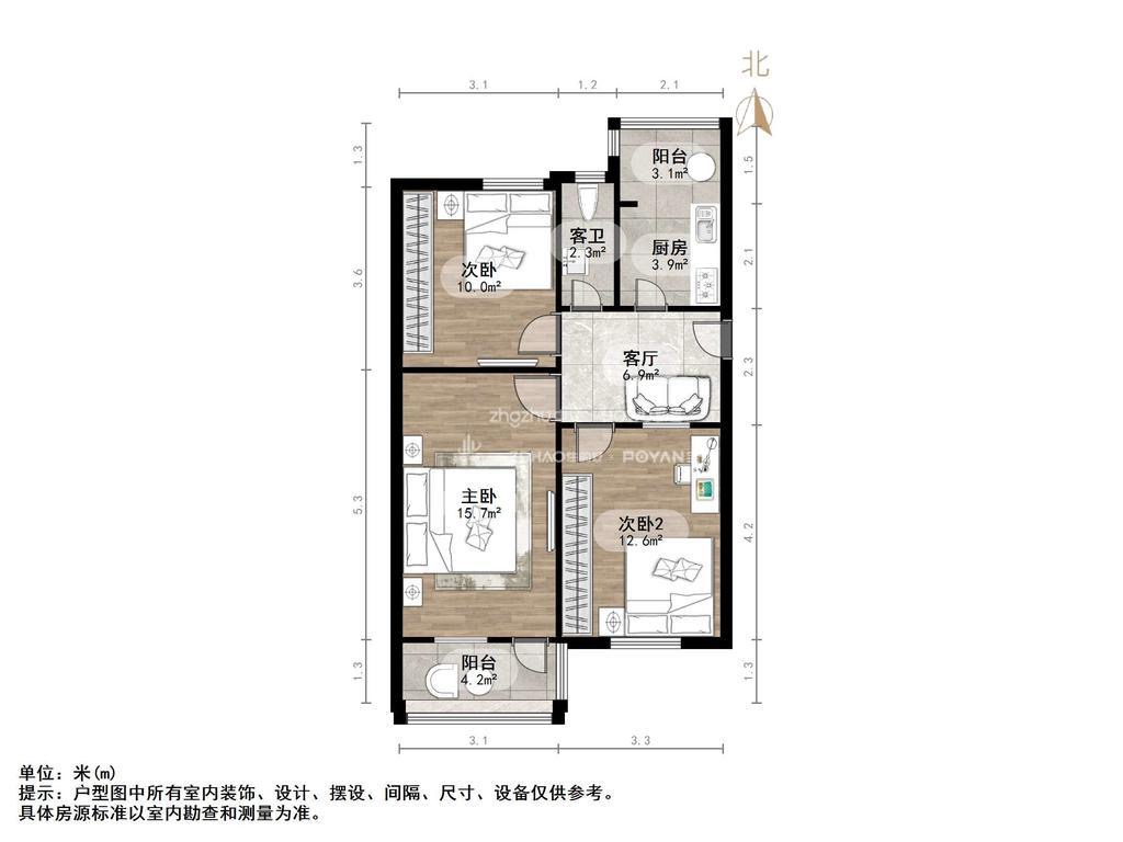 朝向南北 建筑面积70㎡
