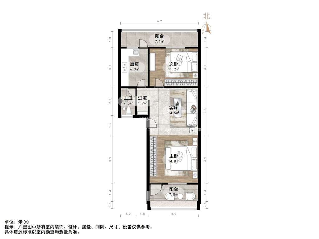 厅室2室1厅1卫1阳台