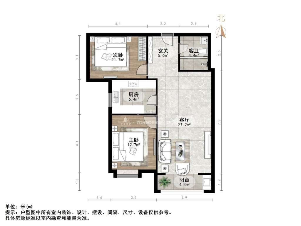 朝向南北 建筑面积96㎡