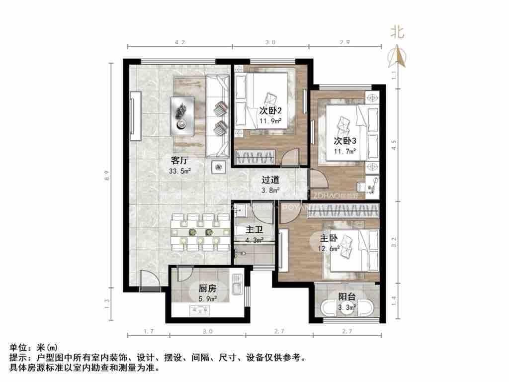 朝向南北 建筑面积120㎡