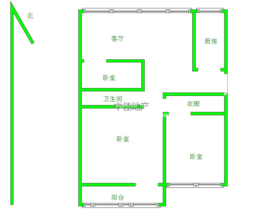 厅室3室2厅1卫1阳台