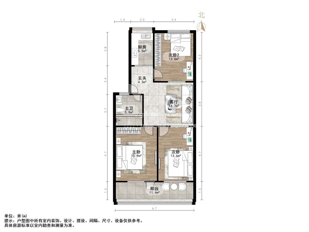 朝向南北 建筑面积101㎡