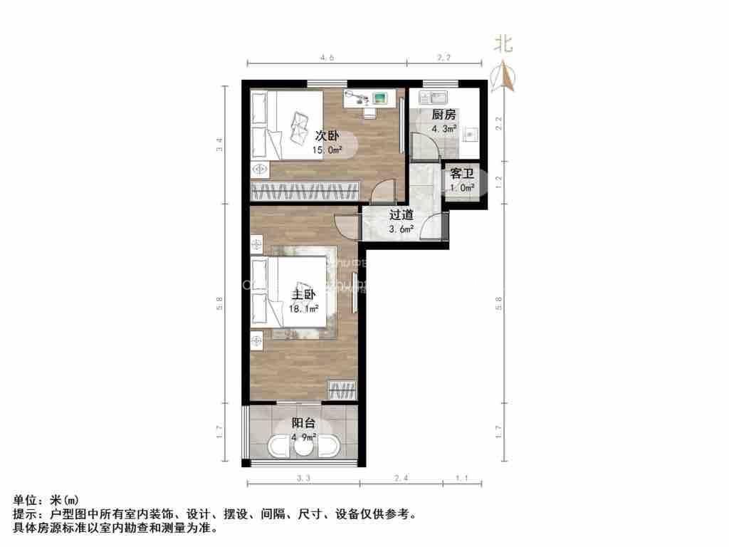 朝向南北 建筑面积57.33㎡