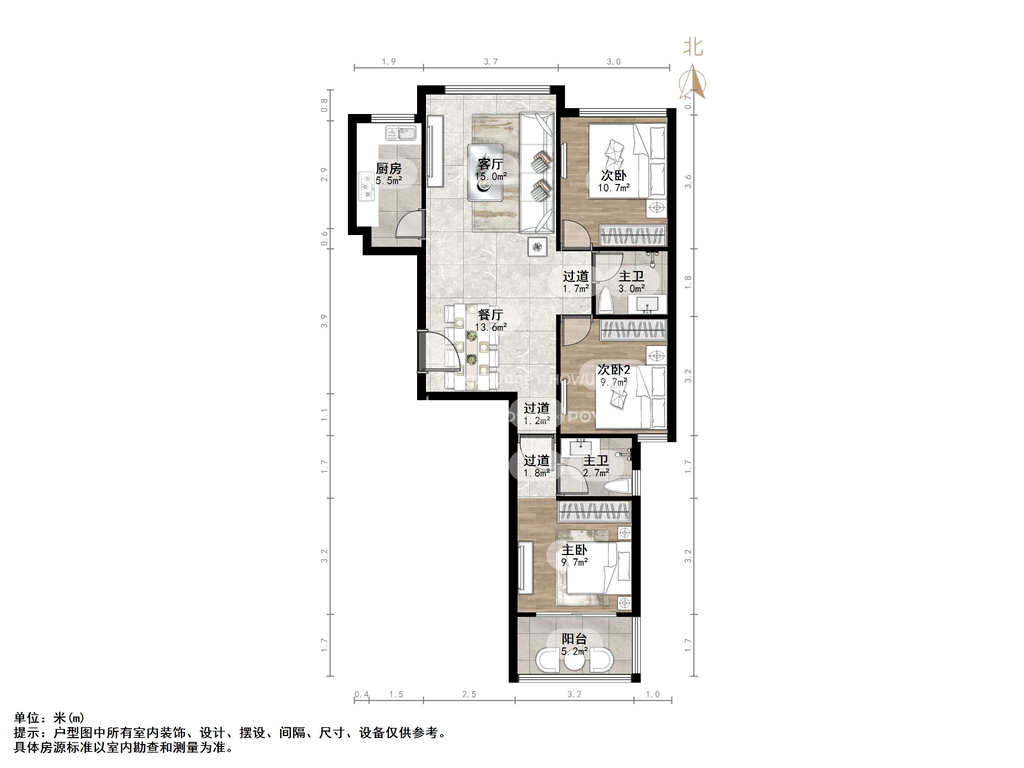 厅室3室2厅1卫1阳台