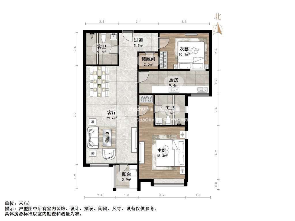 厅室2室2厅2卫1阳台