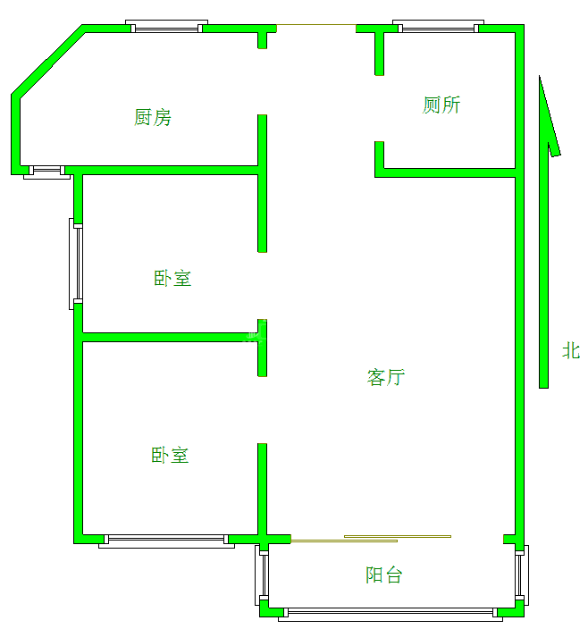 厅室2室1厅1卫1阳台