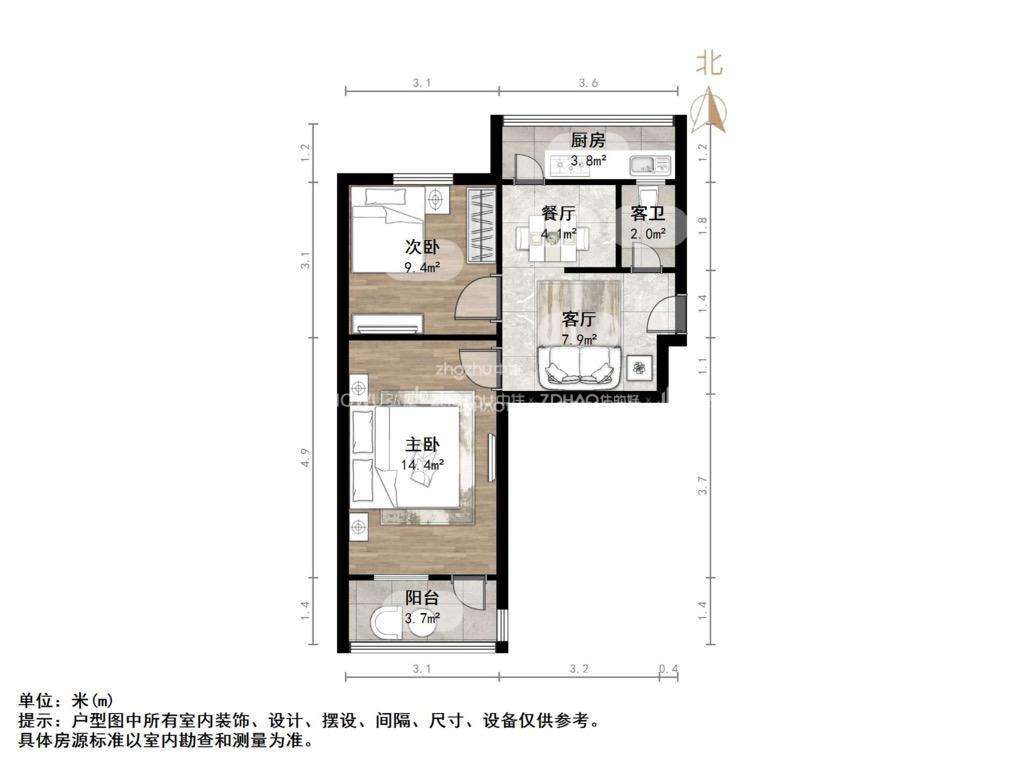 厅室2室1厅1卫1阳台