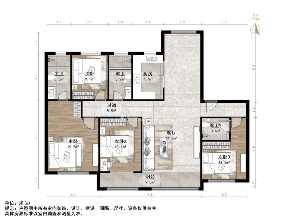 厅室4室2厅3卫1阳台
