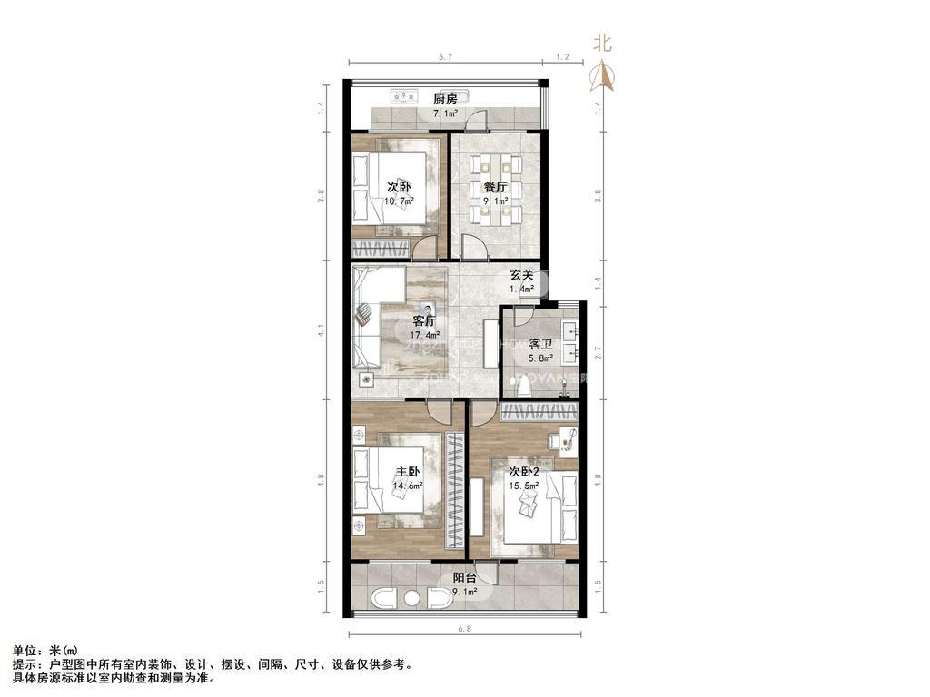 厅室3室2厅1卫1阳台