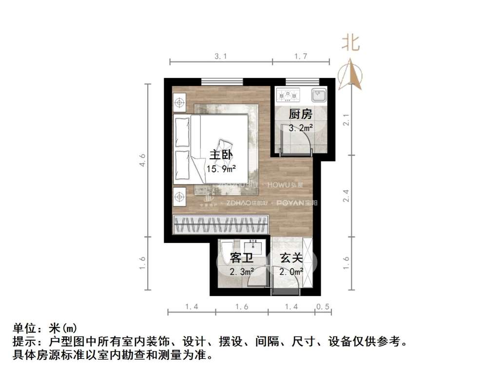 朝向北 建筑面积33.18㎡