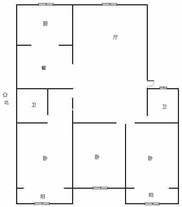 厅室3室1厅1卫1阳台