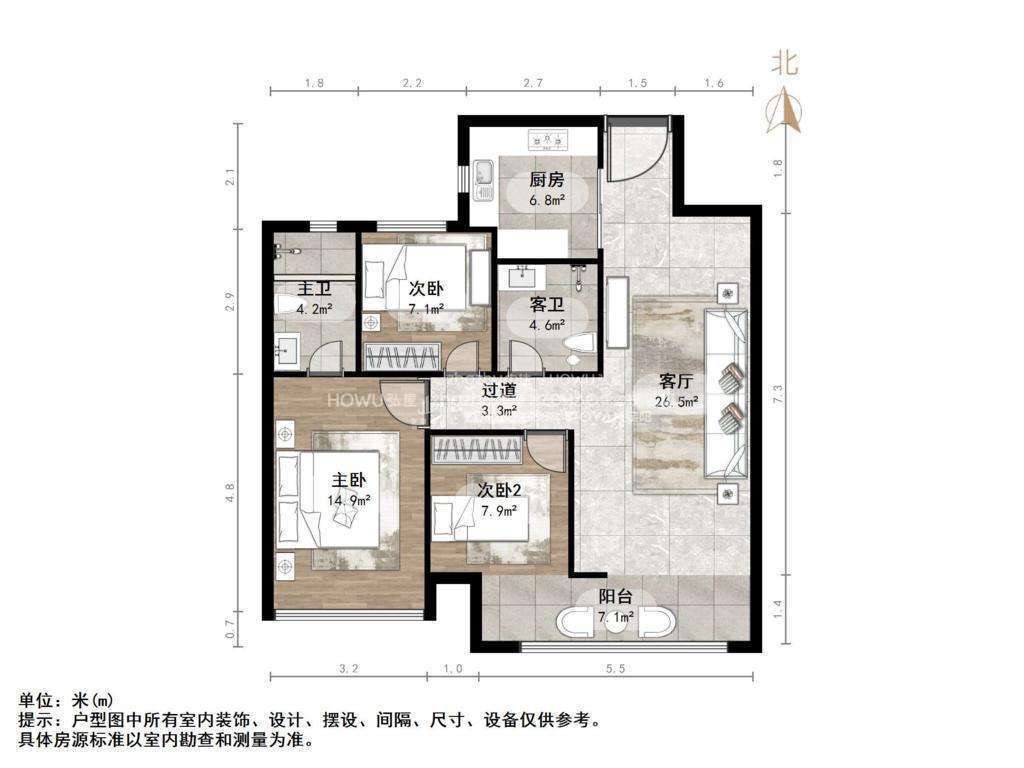 朝向南北 建筑面积110㎡