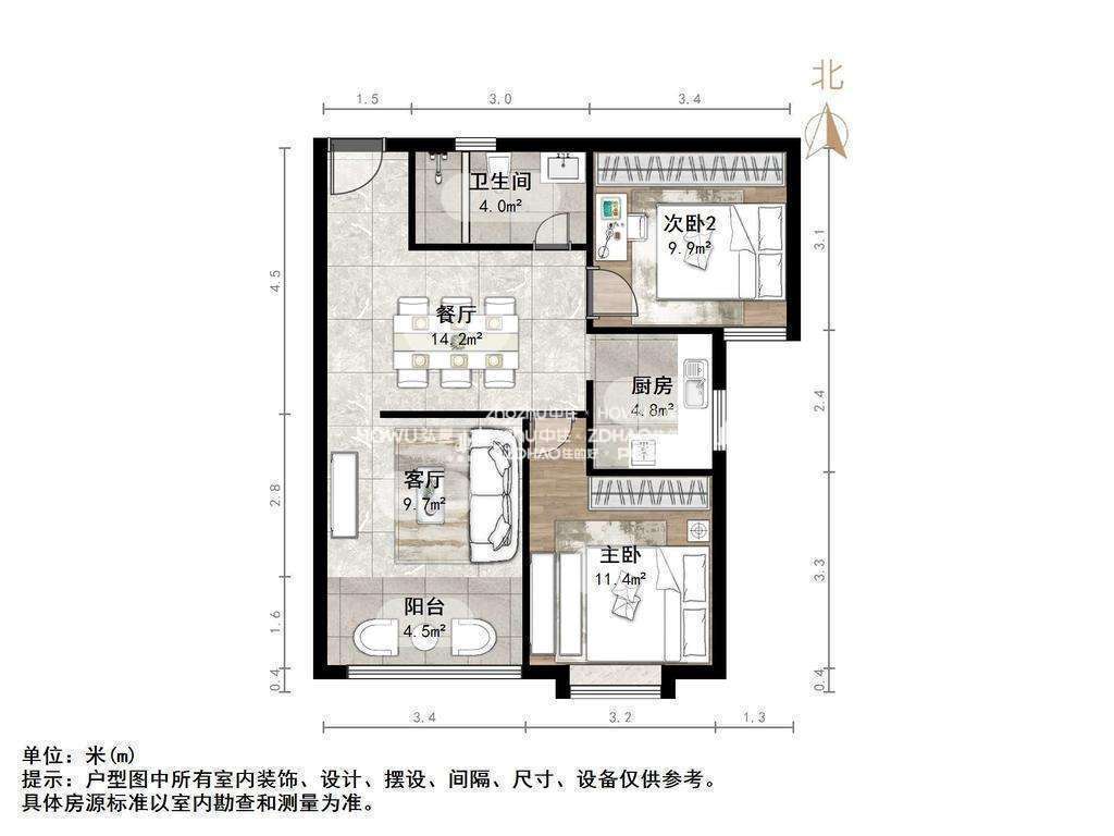 朝向南北 建筑面积80㎡