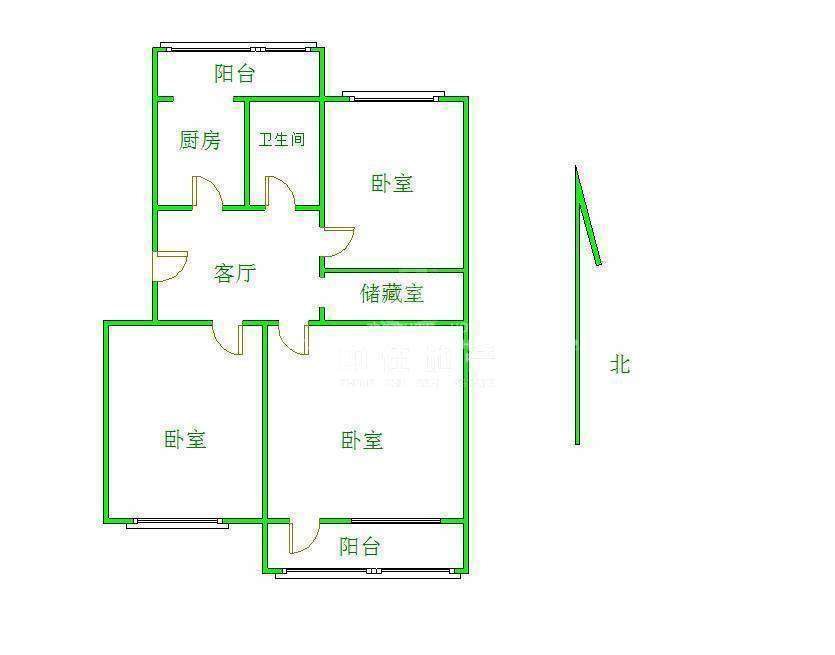 厅室3室1厅1卫2阳台