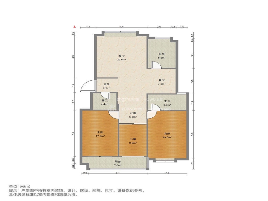 厅室3室2厅1卫0阳台