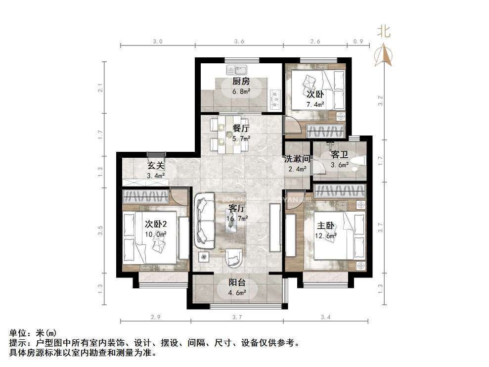 厅室3室2厅1卫1阳台