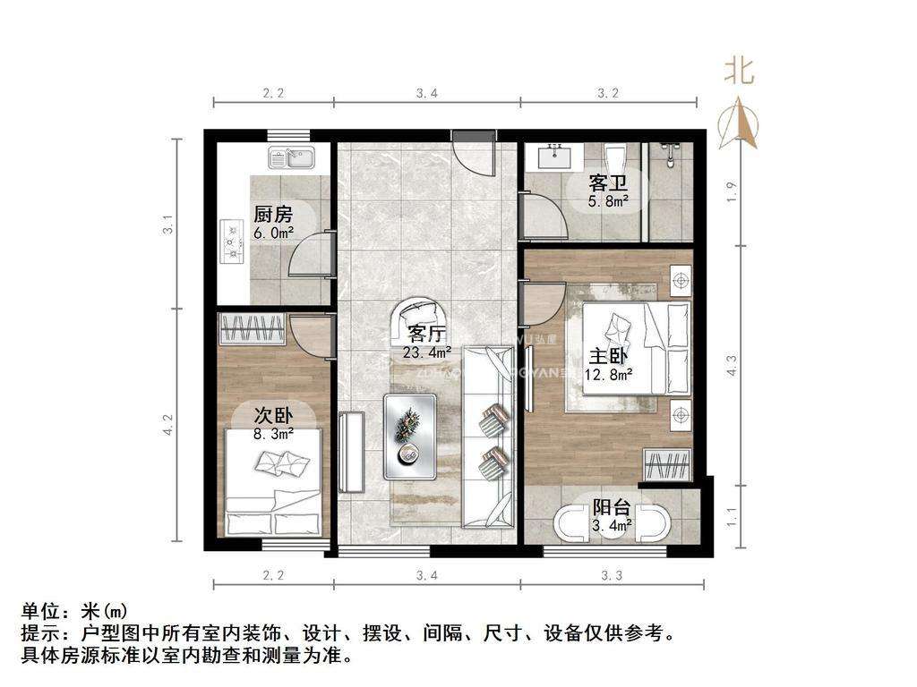 朝向南北 建筑面积91.99㎡