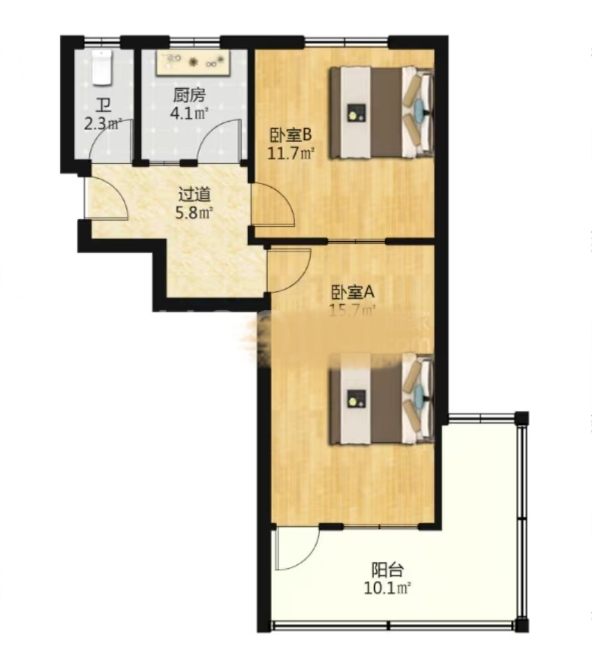 厅室2室2厅1卫1阳台