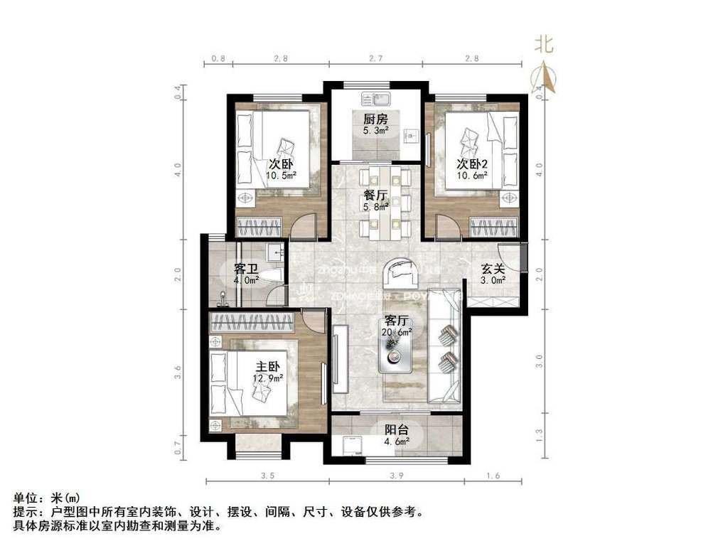 厅室3室2厅1卫1阳台
