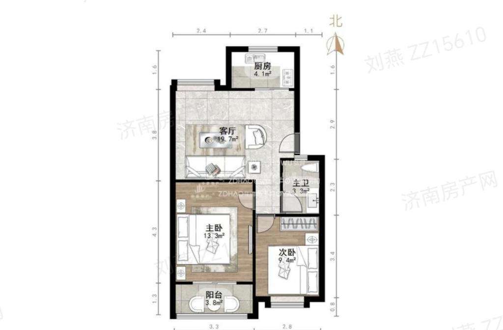 朝向南北 建筑面积75㎡