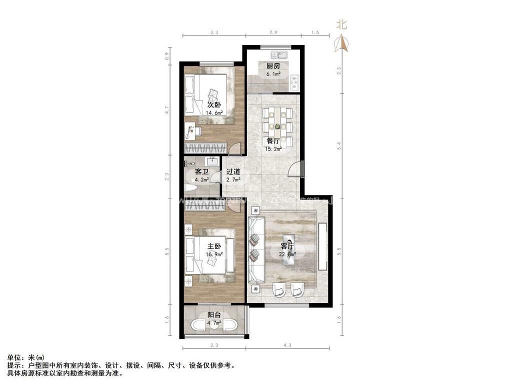 厅室2室1厅1卫1阳台
