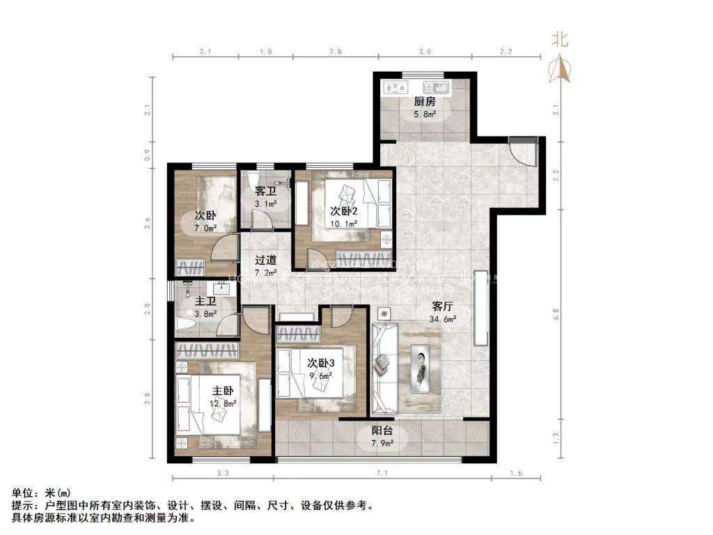朝向南北 建筑面积143.4㎡