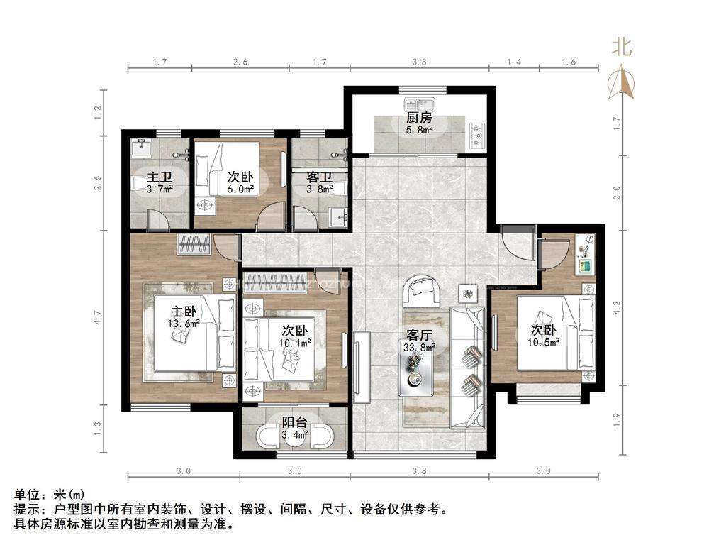 厅室4室2厅2卫2阳台