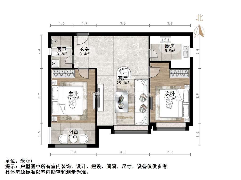 厅室2室1厅1卫1阳台