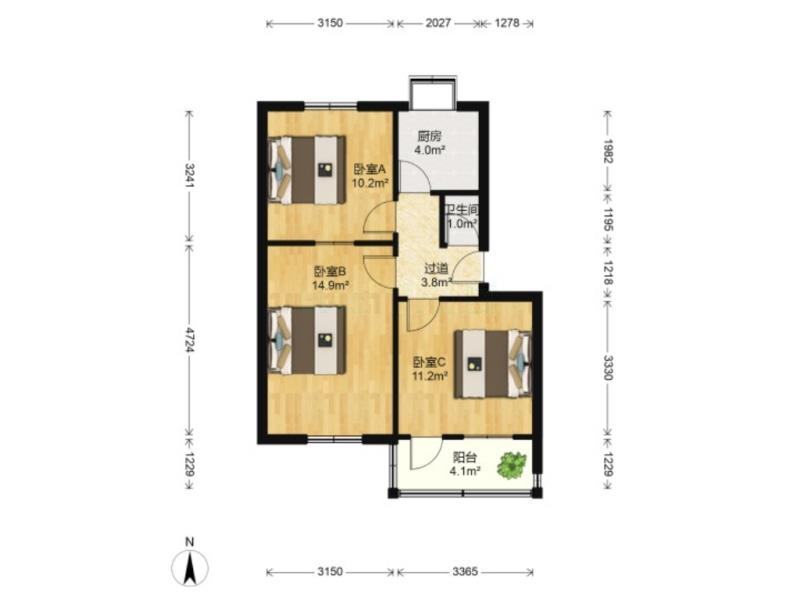 厅室3室0厅1卫1阳台