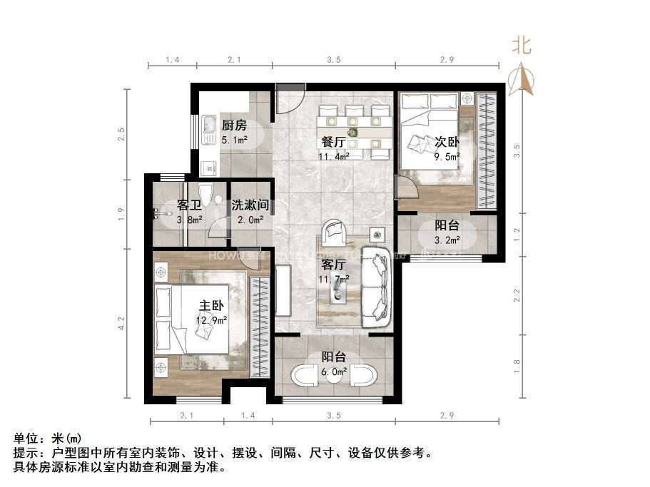 朝向南 建筑面积89㎡
